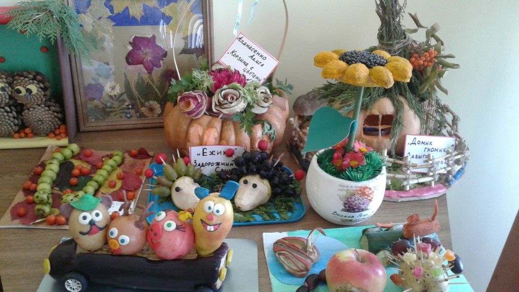 12.10.2017года в нашем учреждении прошла выставка «Дары осени». Воспитанники и их родители представили свои работы — разнообразные поделки, которые поразили оригинальностью задумки, техникой выполнения, своеобразием и неповторимостью.