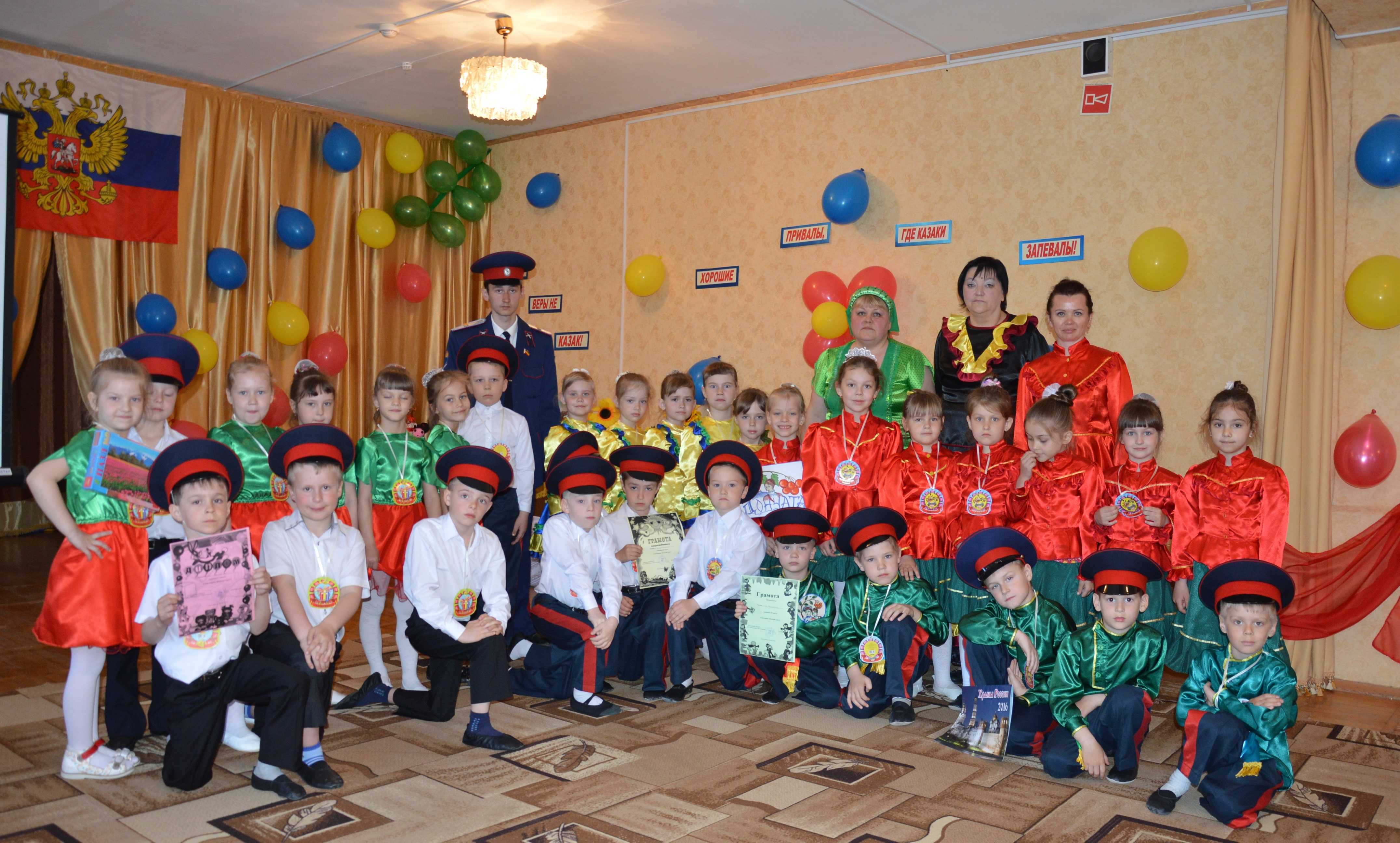 26 апреля в нашем детском саду прошла игра-викторина «Казачий круг», в которой приняли участие воспитанники подготовительных групп, педагоги детского сада, преподаватель кружка «Краеведение» из МБУДО «Центр «Радуга» г.Волгодонска и оценивал в составе жюри специально приглашенный гость Кабанов И.А. – руководитель казачьей молодежной организации «Донцы». Участники каждой команды игры-викторины представили свои эмблемы, а затем по маршрутным листам проходили по 4 игровым станциям: «Игровая», «Малая родина», «Горенка» и «Обрядовая». В заключении члены жюри подвели итоги, команды были награждены грамотами и призами. Праздник прошел задорно, весело и подарил участникам и гостям много позитивных эмоций.