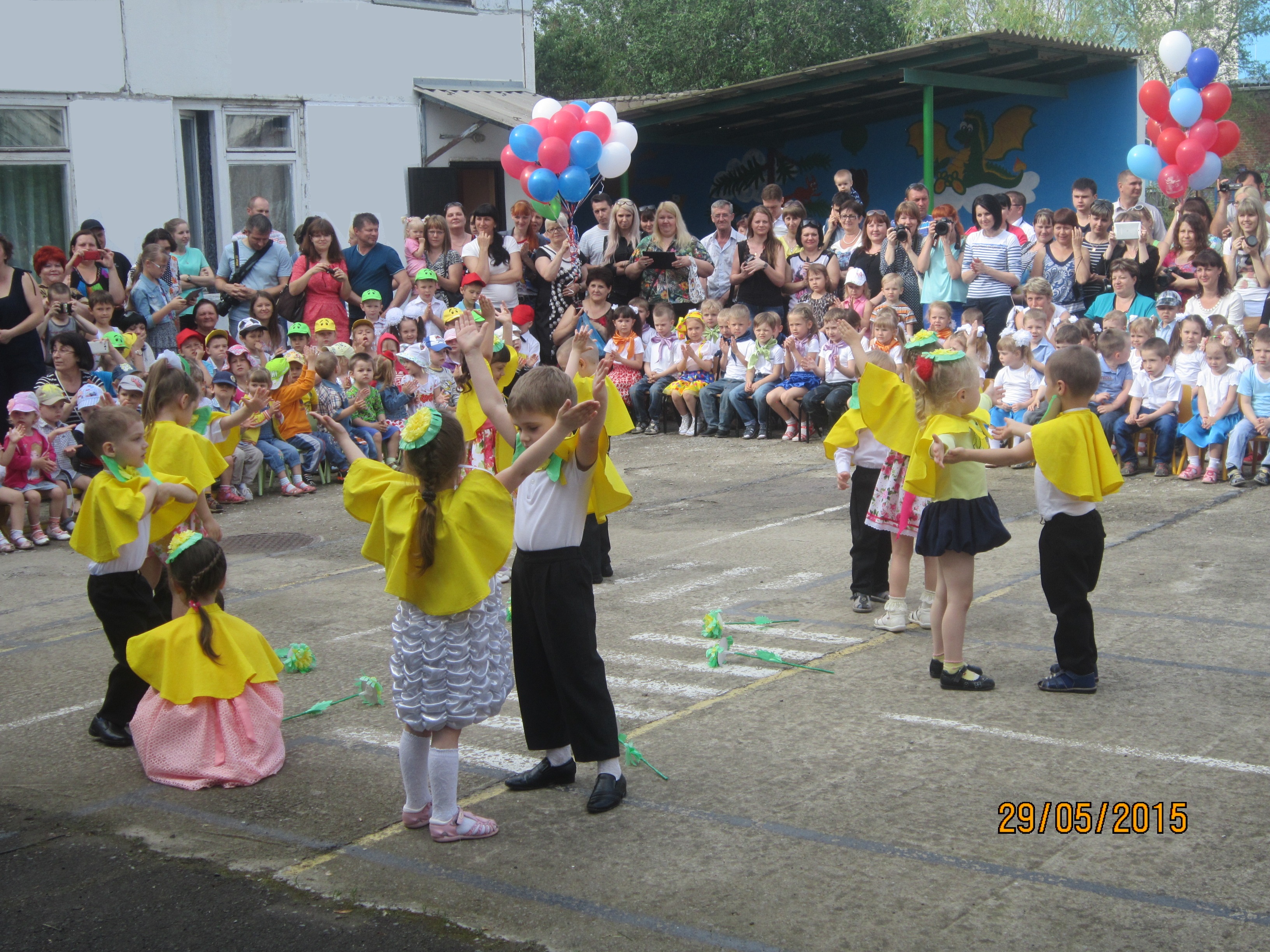 29 мая в нашем образовательном учреждении прошел праздник, посвященный окончанию учебного года и Дню защиты детей. Праздник стал ярким событием в жизни наших ребят, он произвел яркое впечатление на всех присутствующих: сколько здесь было радости, смеха, веселья, хорошего настроения. Воспитанники всех групп приняли участие в данном мероприятии: они пели песни, танцевали, читали стихи в ярких костюмах. Традиционно, под звон песни, в небо взлетели разноцветные шары.